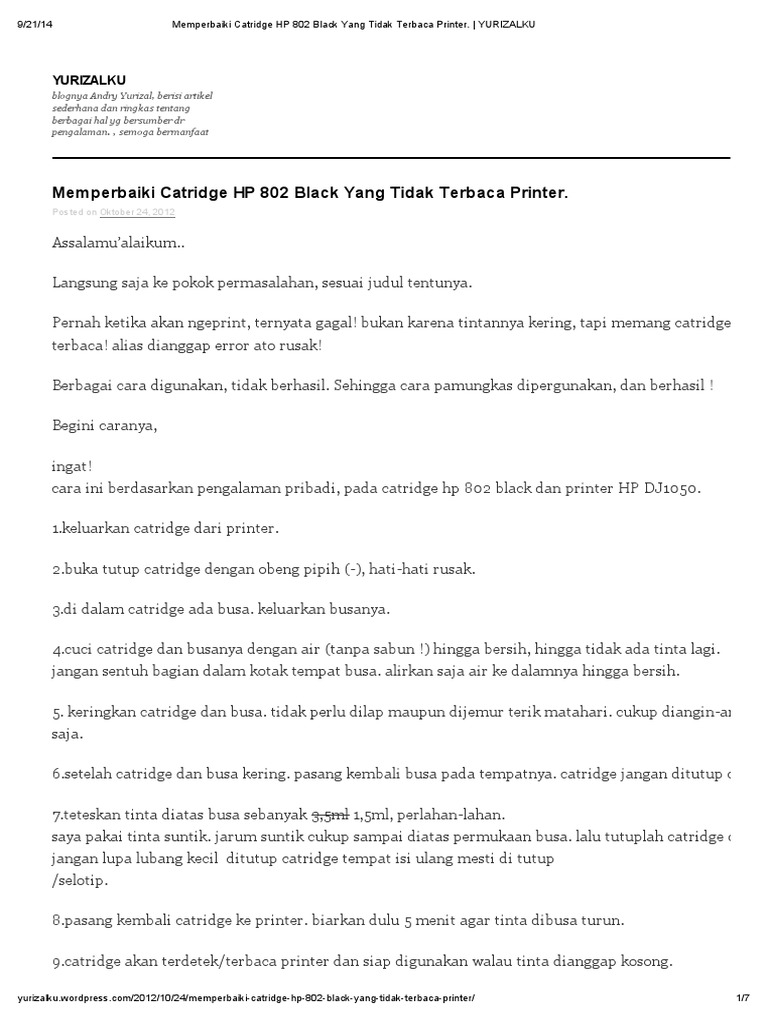 Memperbaiki Catridge HP 802 Black Yang Tidak Terbaca Printer …