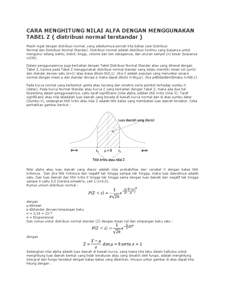 Cara Menghitung Nilai Alfa Dengan Menggunakan Tabel z