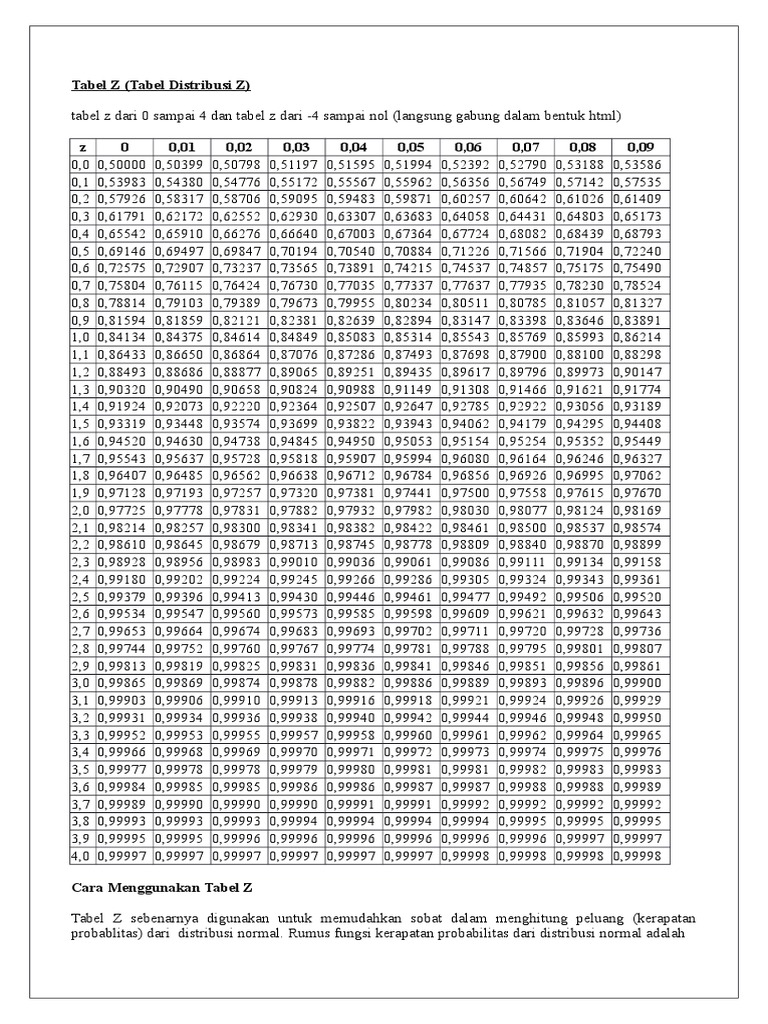 Tabel Distribusi Z dan Cara Membacanya | .