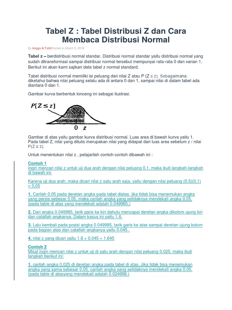 Cara Menggunakan Tabel Z