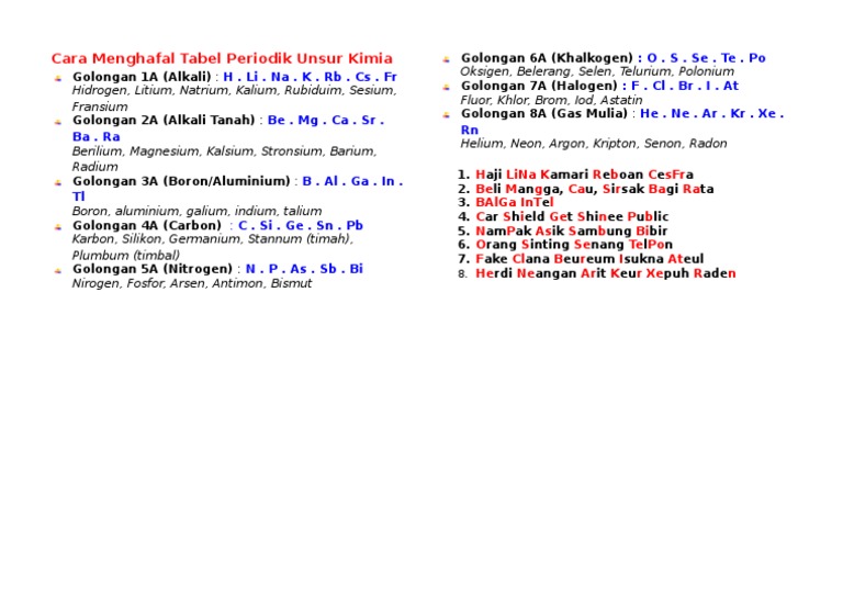 DOC) Rumus Cepat Menghafal Tabel Periodik Unsur Kimia | Akasaka Ryuunosuke - Academia.edu