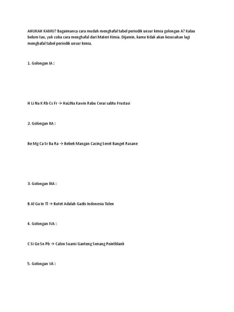 Cara mudah menghafal tabel periodik kimia dengan gokil buat CAI | Tania Riwu - Academia.edu