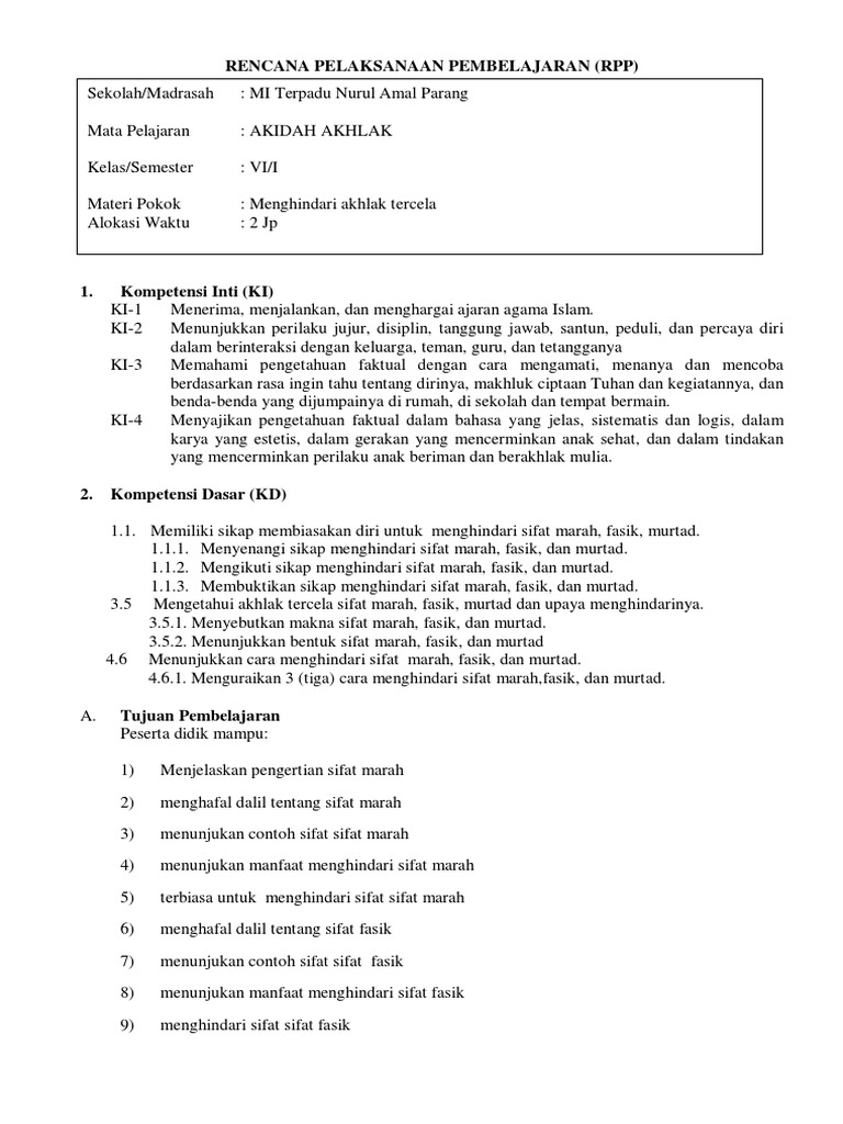 DOC) RPP A Akhlaq Kls 6 17 PLJ 5 smt 1 | aby kembar - Academia.edu