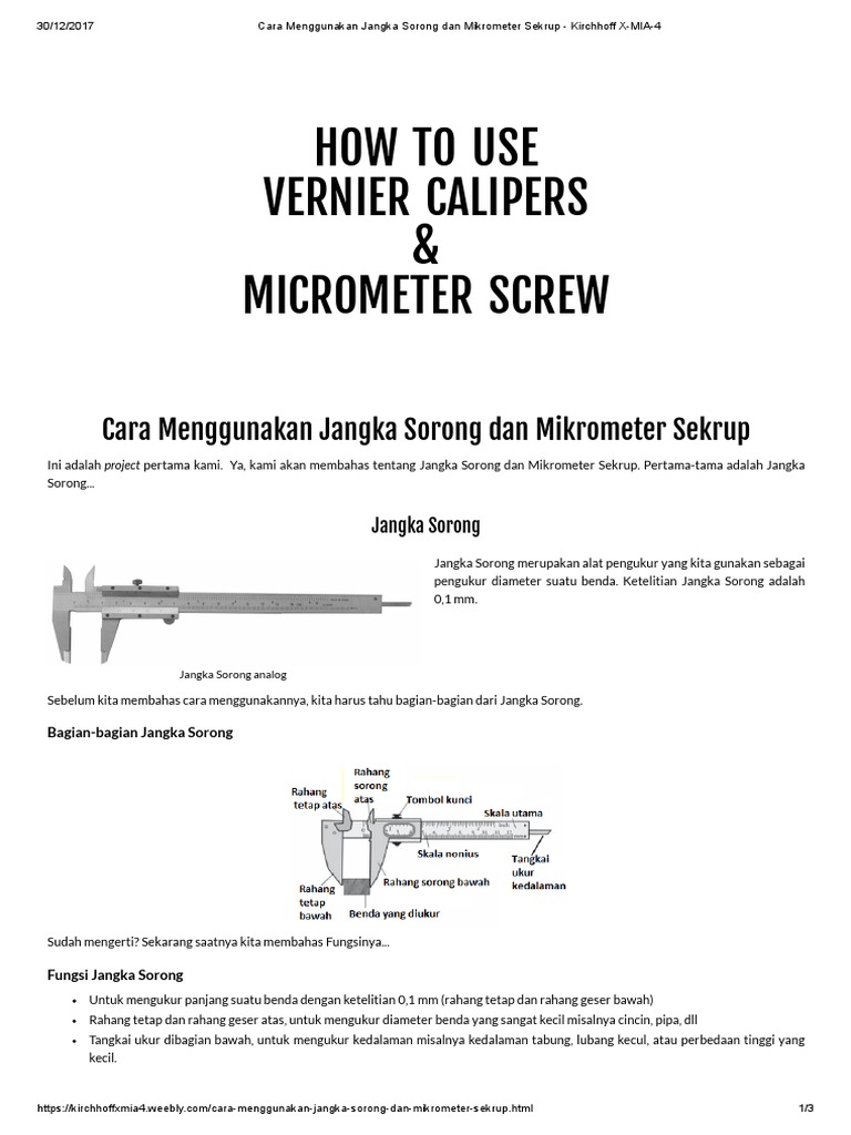 Cara Menggunakan Jangka Sorong dan Mikrometer Sekrup - Kirchhoff X …