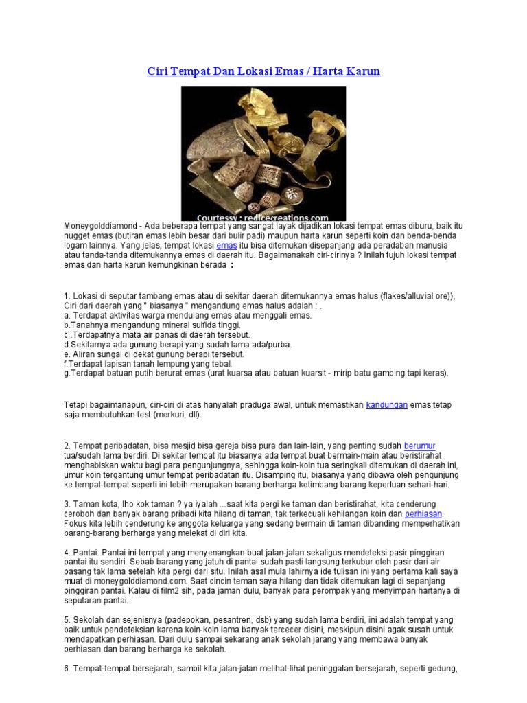 Ciri Tempat Dan Lokasi Emas & Tes Kadar Emas