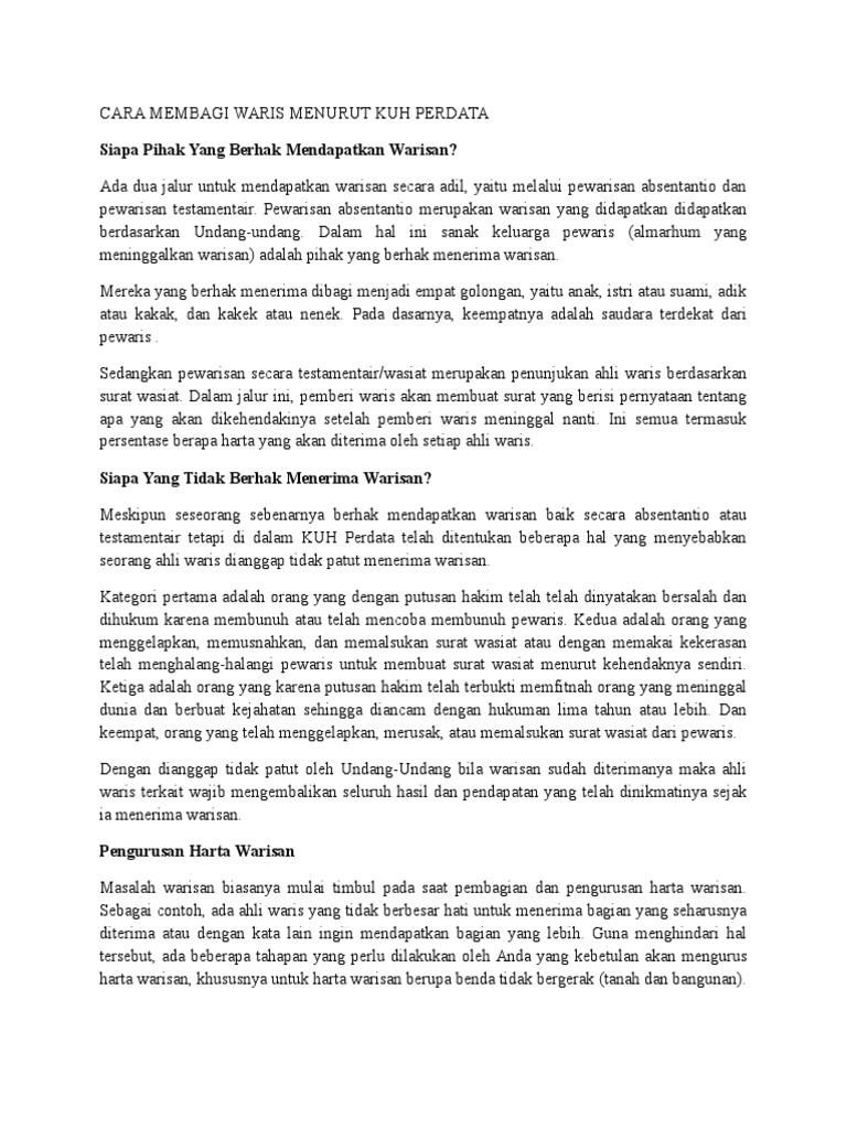 Waris Menurut Kuh Perdata