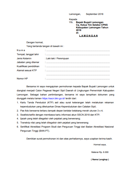 DOC) Contoh Surat Lamaran Kerja CPNS | barok silfiani - Academia.edu