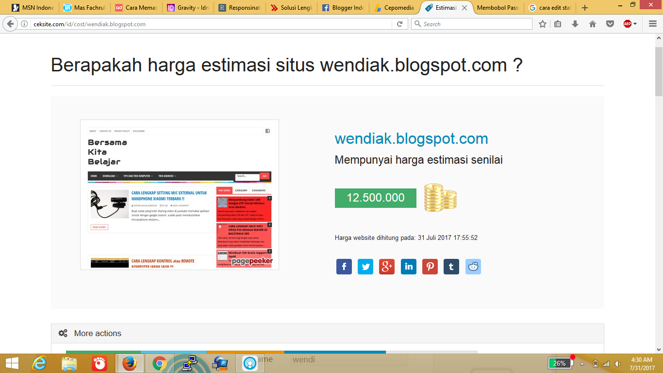 Cara mudah mengecek Harga Blog atau Website - Blogger Indonesia