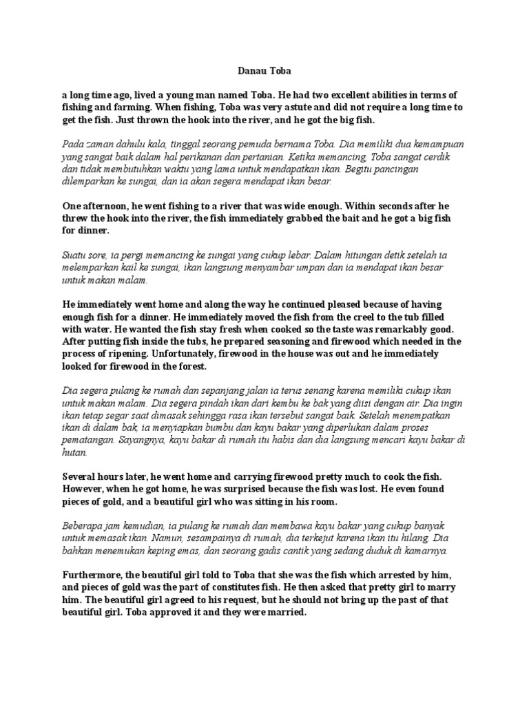 Cerita Danau Toba Dalam Bahasa Inggris Dan Terjemahannya