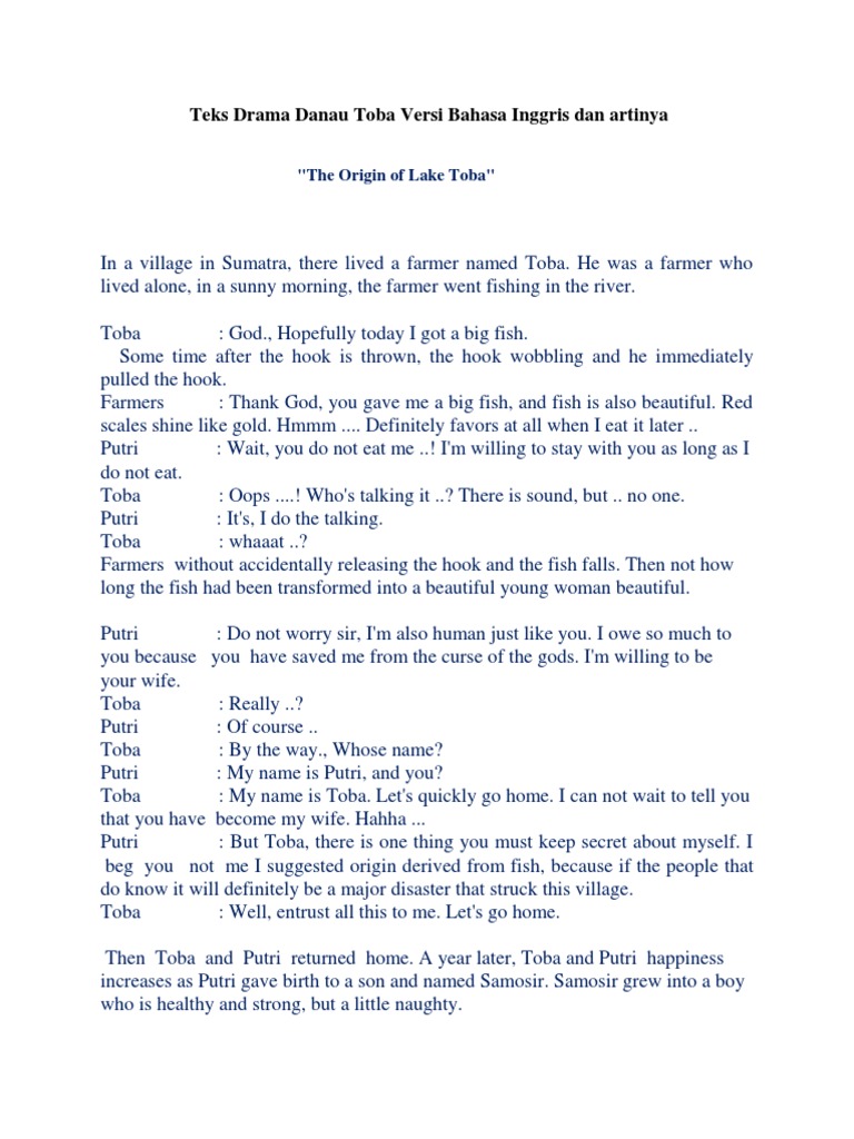 Contoh Narrative Text Legend Danau Toba Dalam Bahasa Inggris