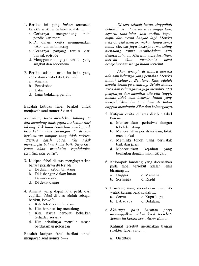 Contoh Soal Menentukan Unsur Intrinsik Teks Fabel - PELAJARAN …