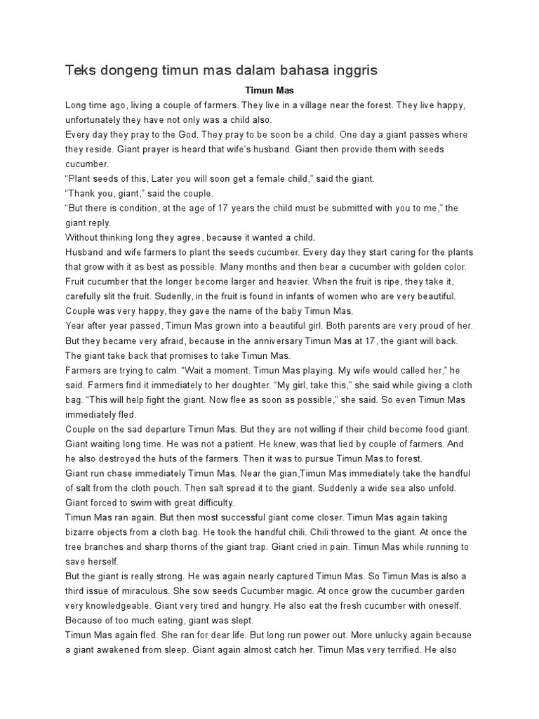 Cerita Rakyat Timun Mas Dalam Bahasa Inggris Beserta Arti Lengkap …