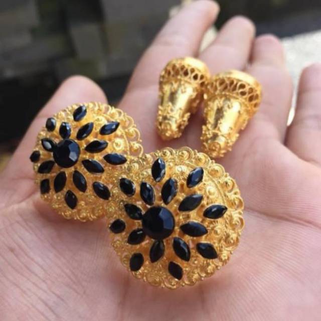 Set Bros Kebaya Alpaka Bali Motif Cotek Modif (Giwang Tusuk Skrup Biasa , Bukan Subeng / Cerorot Bali) | Lazada Indonesia