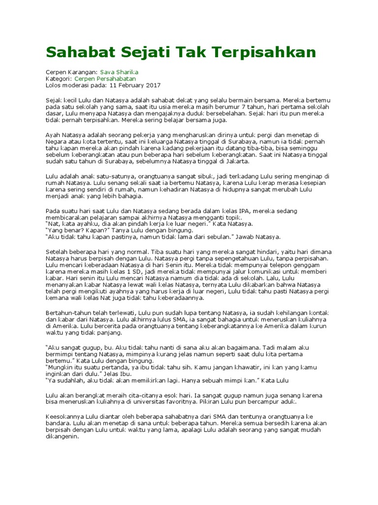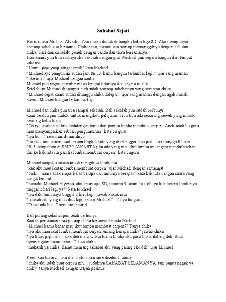 DOC) Cerpen Persahabatan Sejati | Shinta Zunita - Academia.edu