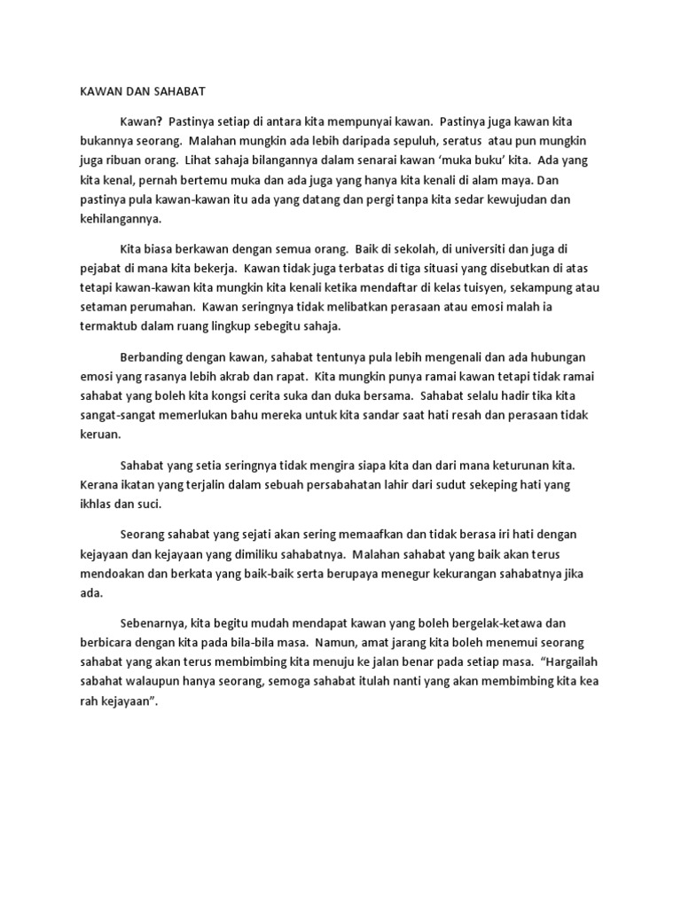 Contoh Karangan 1 Men 1 Sahabat Sejati