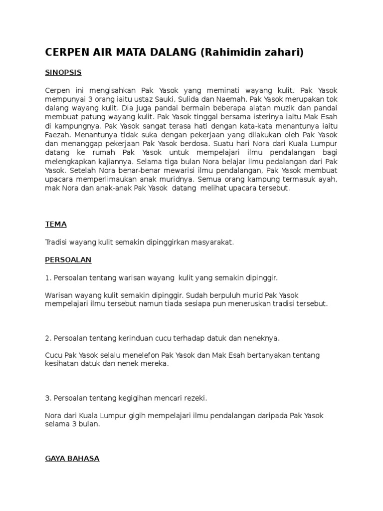 CERPEN AIR MATA DALANG