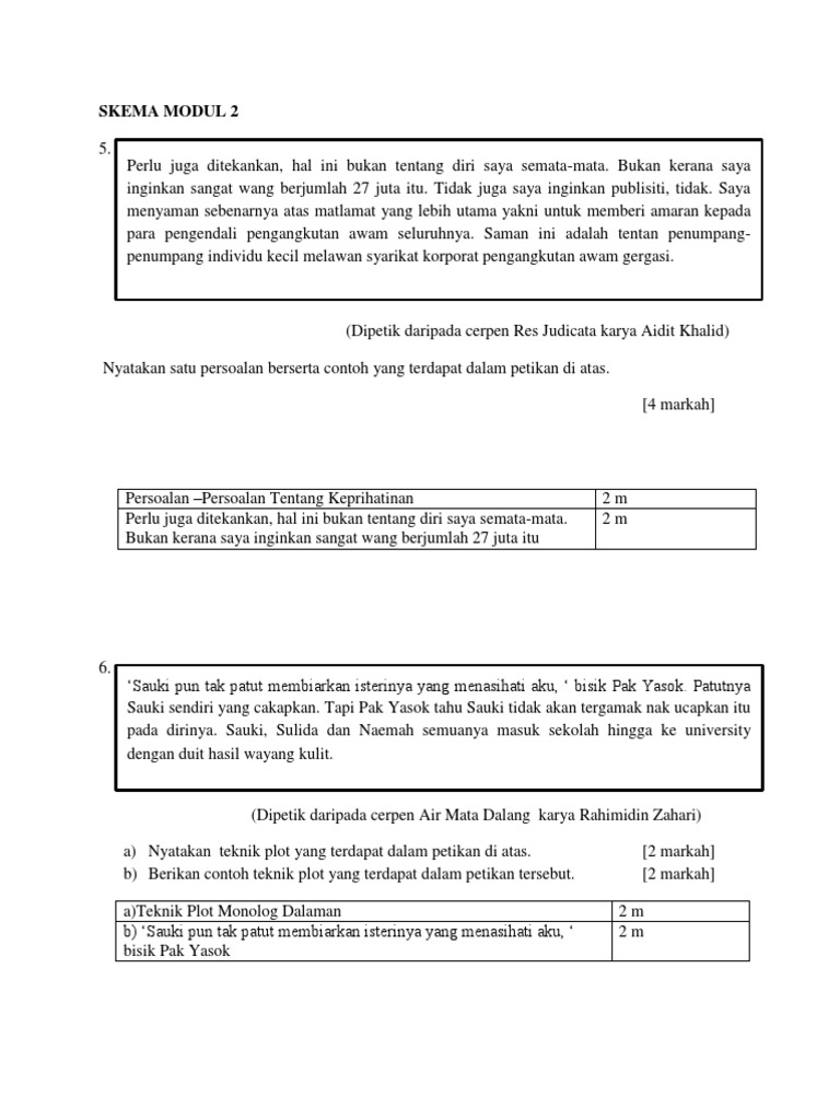 SKEMA MODUL 2 CERPEN CEMERLANG KM