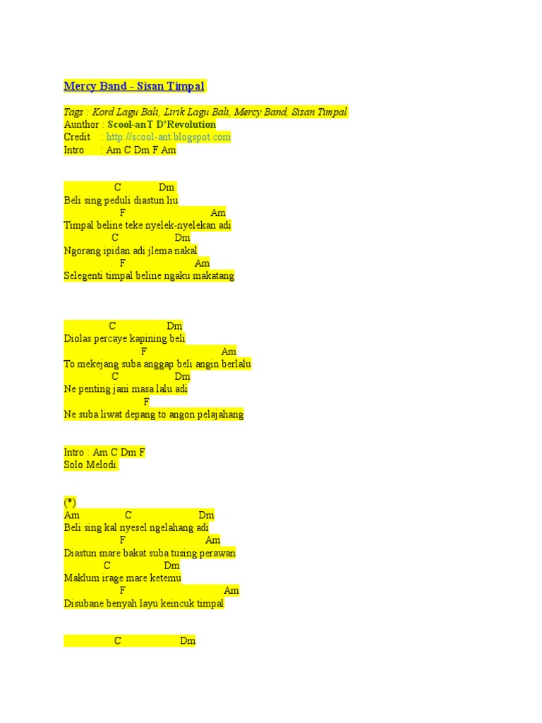 Chord Kunci Gitar : Mercy Band - Sisan Timpal | CHORD LAGU BALI …