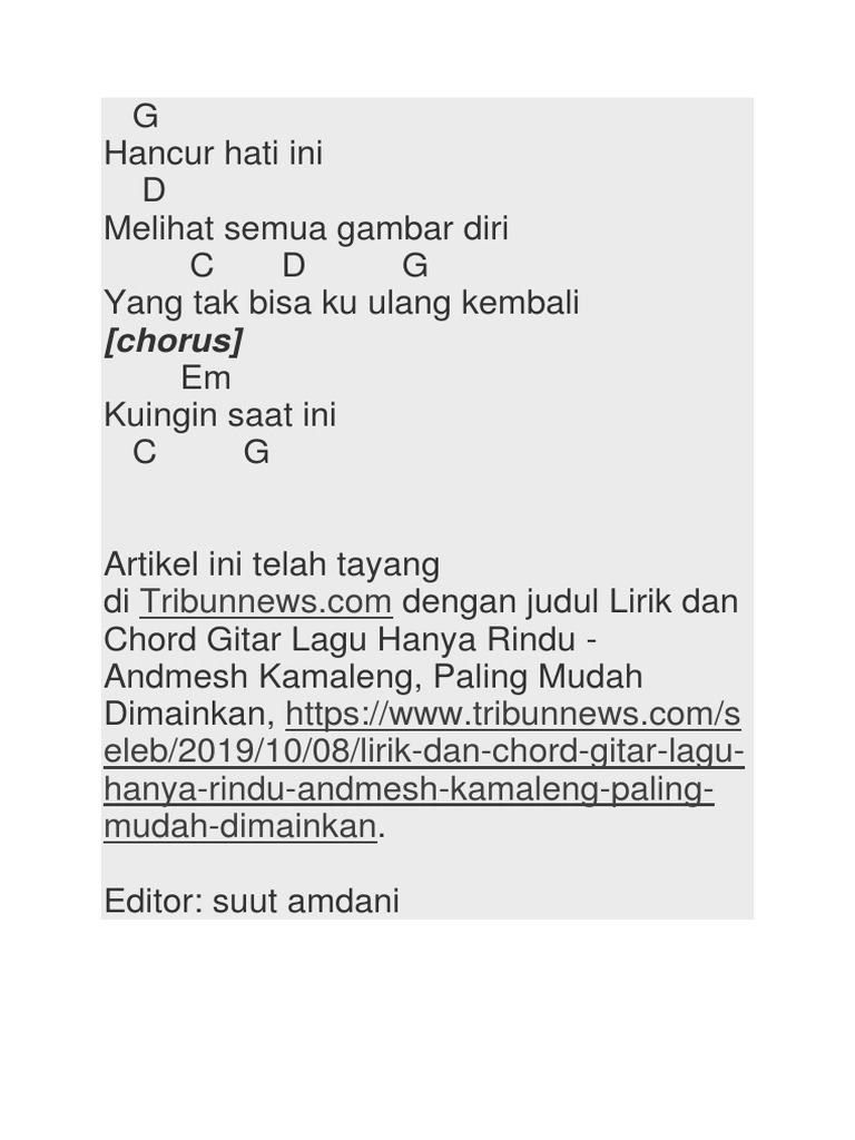 Chord Gitar Lagu Hanya Rindu - Andmesh Kamaleng, Lengkap Link Donwload MP3 - Halaman all - Tribunnews.com