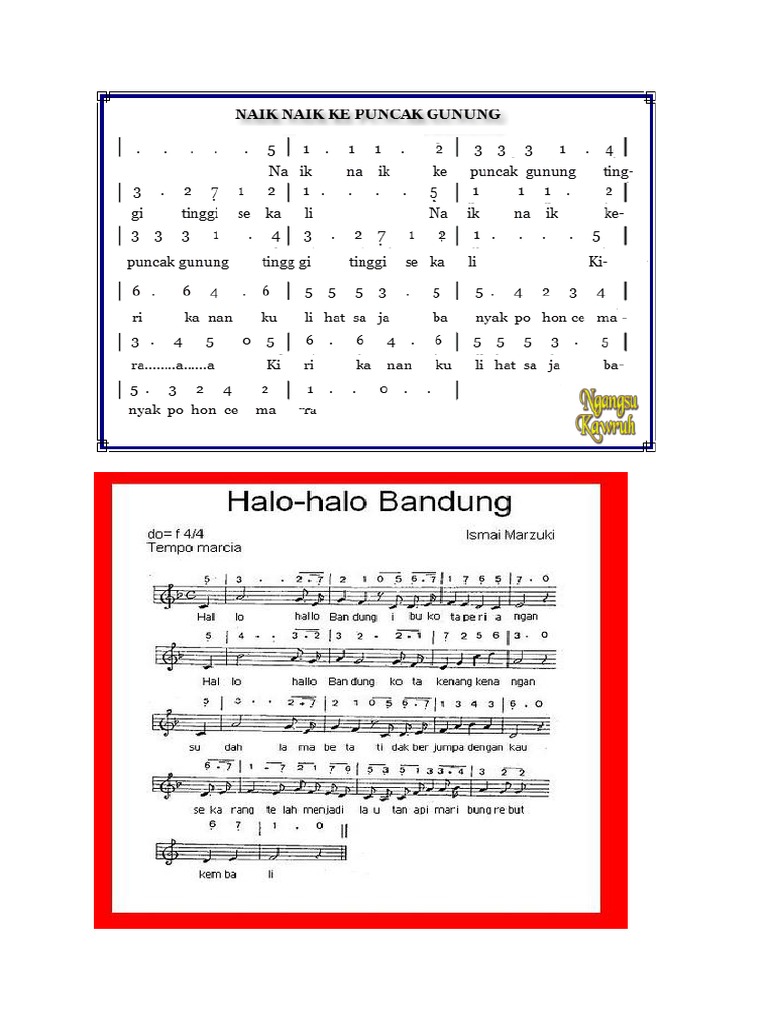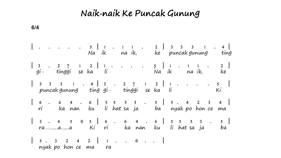 not angka naik naik ke puncak gunung - not angka lagu nusantara …