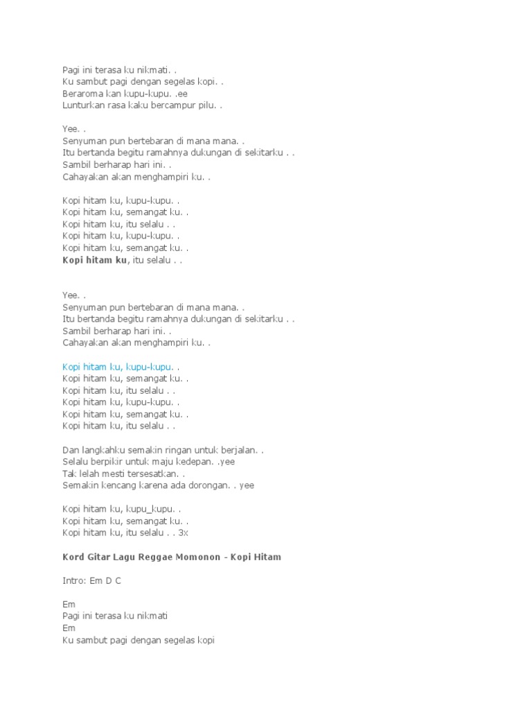 Chord Kunci Gitar Kopi Hitam - Momonon, Lirik Lagu Reggae: Kopi …