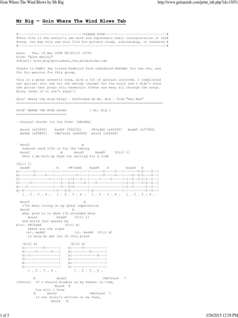 Chord: Wild World - Mr. Big - tab, song lyric, sheet, guitar …