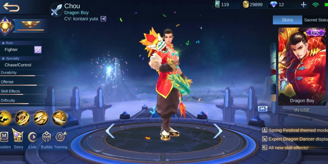 Mobile legends account with DRAGON BOY CHOU + Hayabusa starlight …