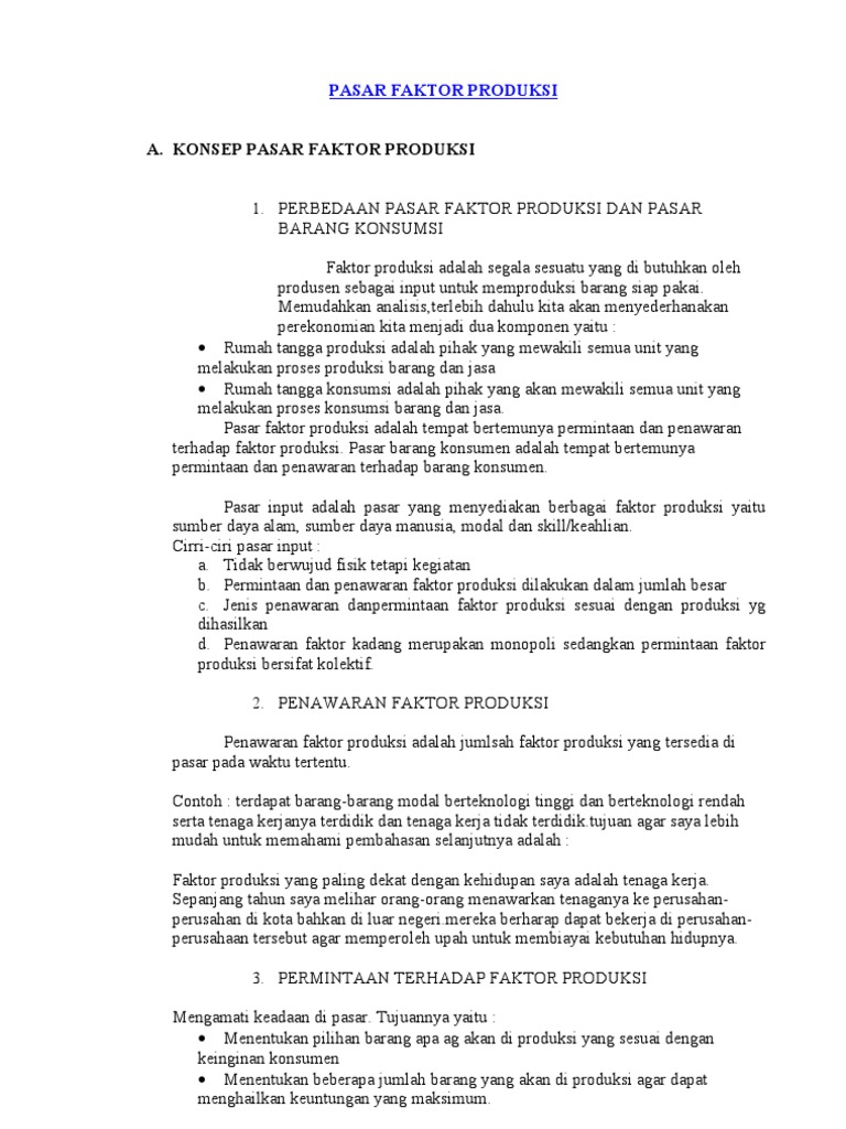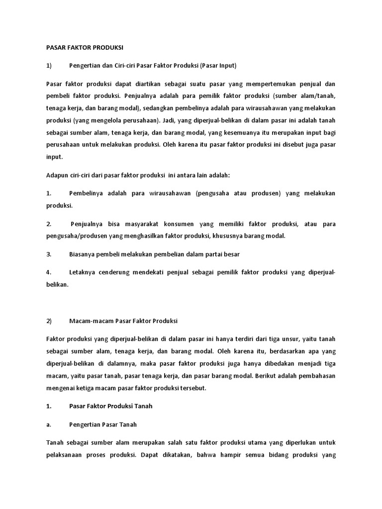 1) Pengertian dan Ciri-ciri Pasar Faktor Produksi