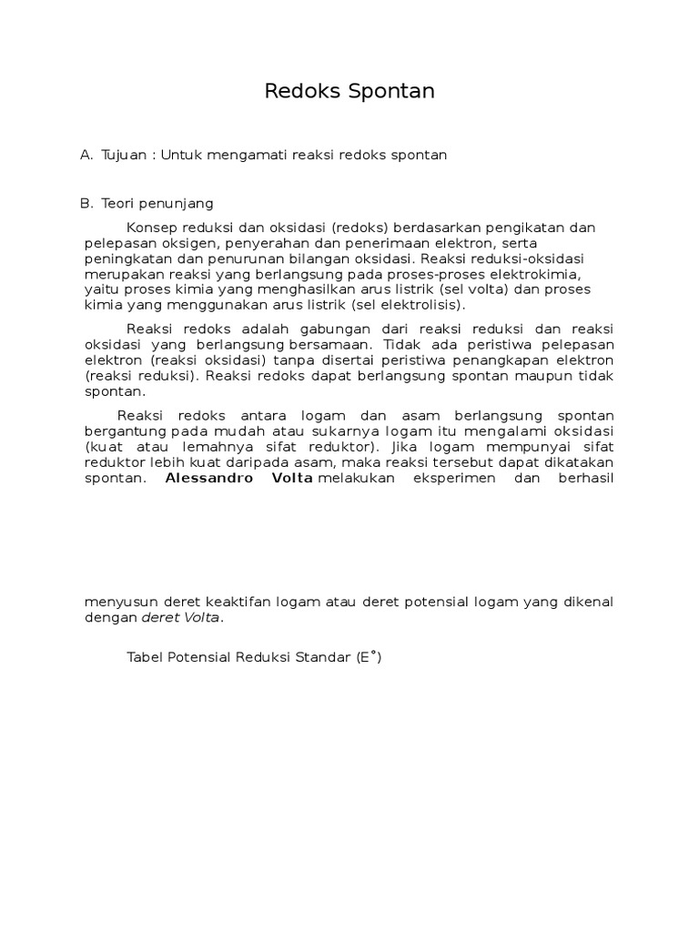 Apa itu Spontanitas reaksi redoks dan Contohnya
