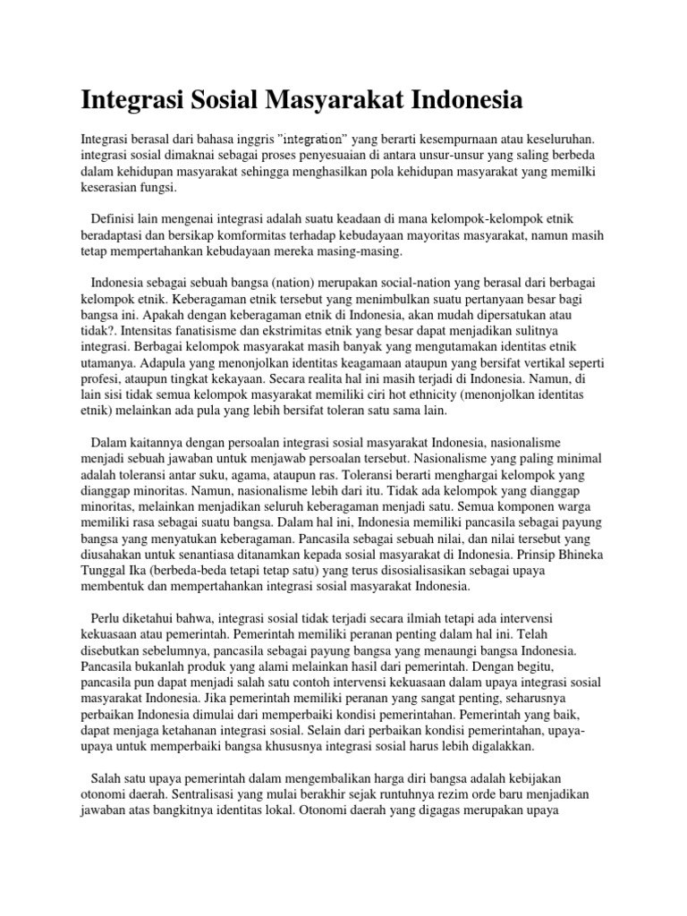 Artikel - Integrasi Sosial Masyarakat