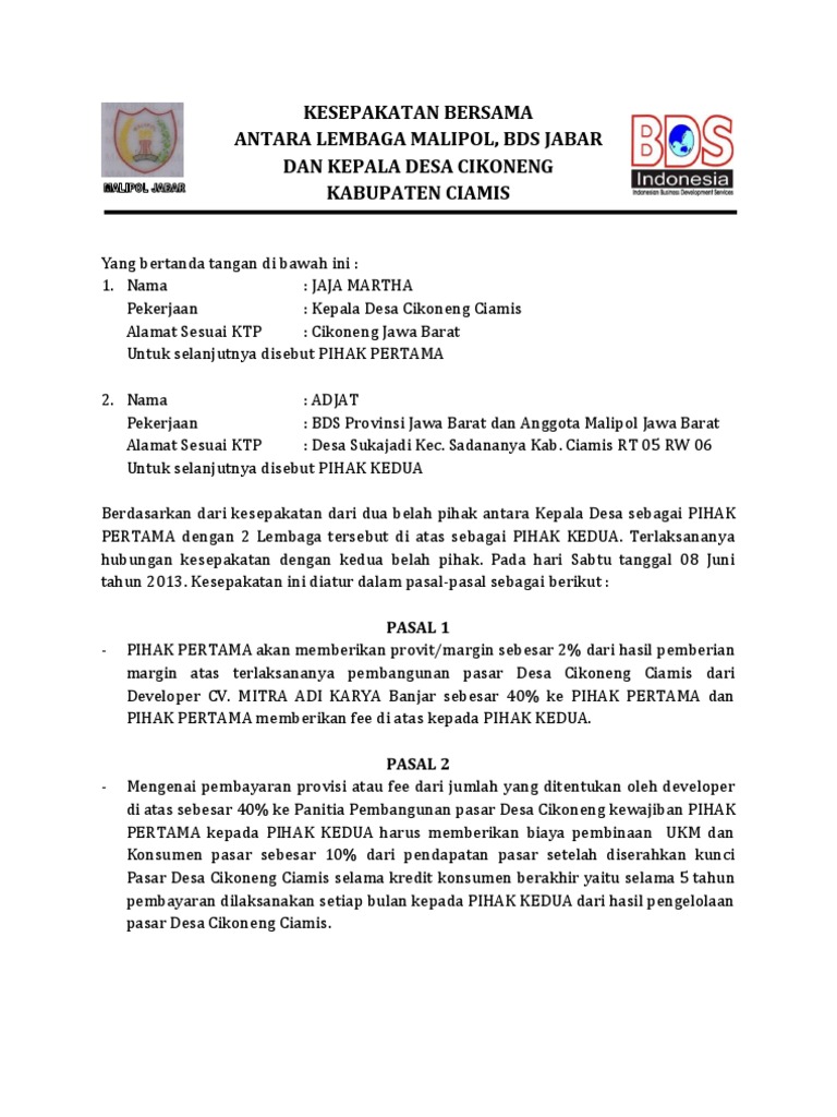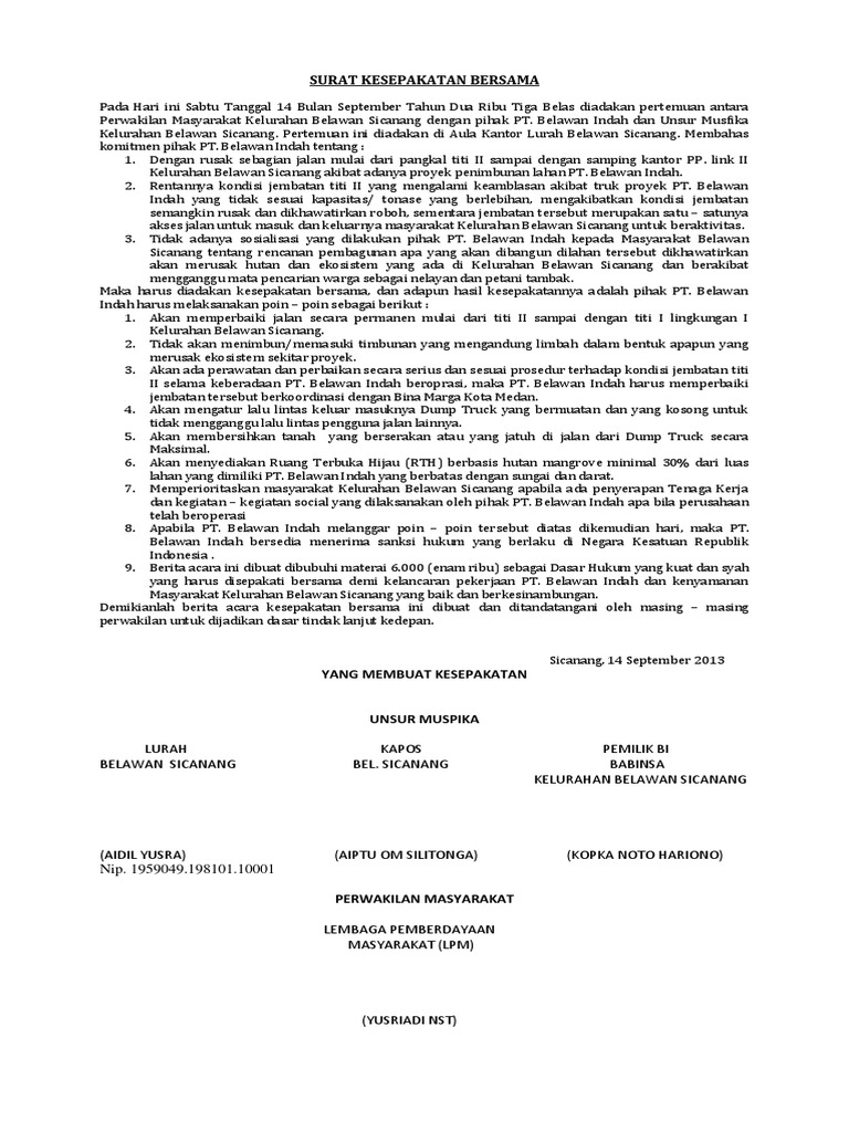 Contoh Surat Kesepakatan Bersama Warga Contoh Aja - Cute766