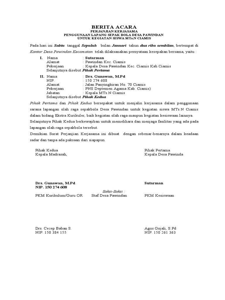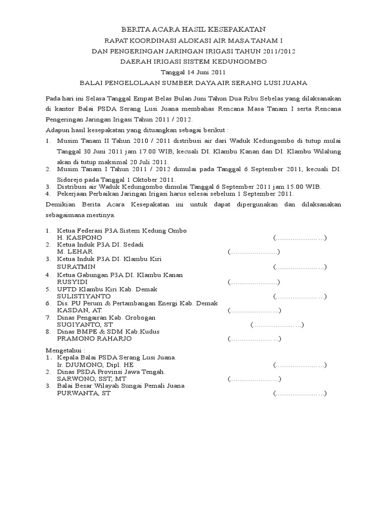 Contoh Berita Acara Kesepakatan Bersama - Kris Web