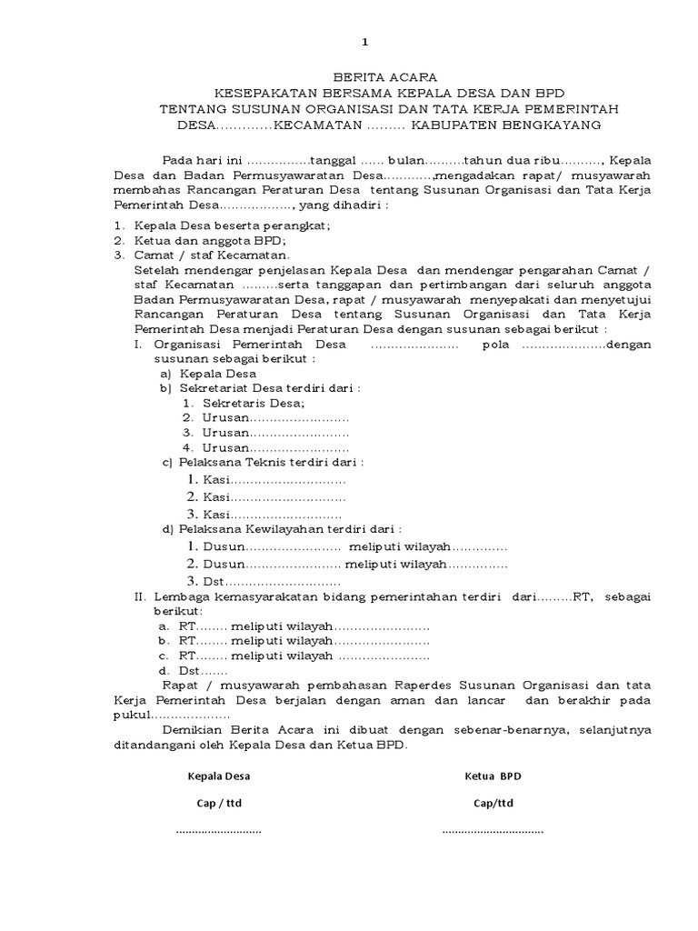 Berita Acara Kesepakatan Bersama Kepala Desa Dan Bpd