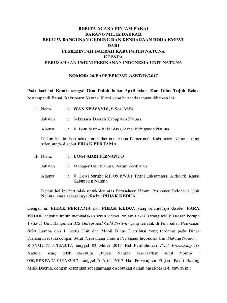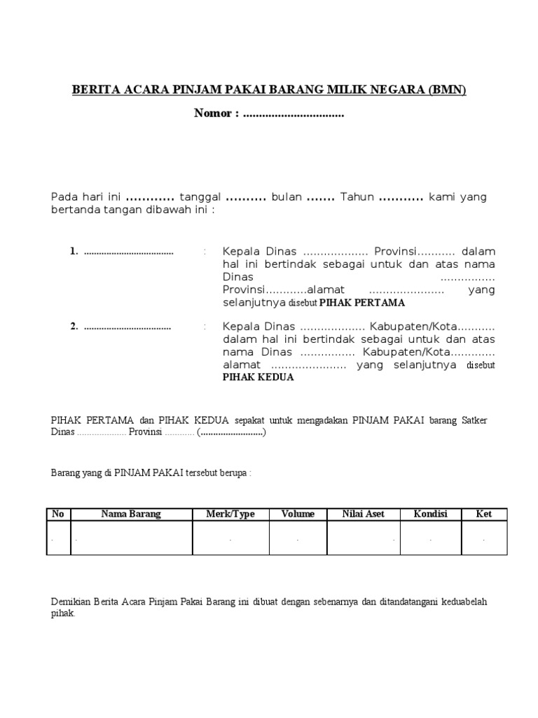 Berita Acara Pinjam Pakai Barang Milik Negara (Bmn)