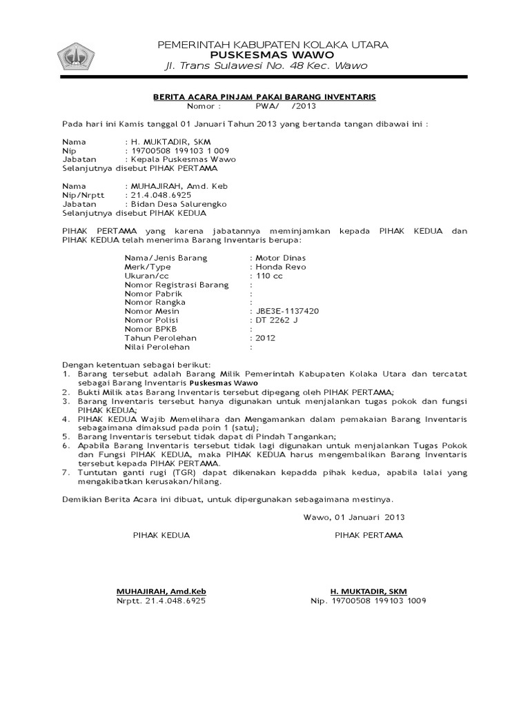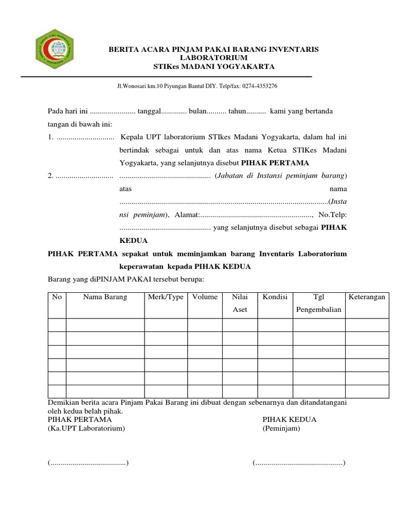 Contoh Berita Acara Peminjaman Barang - Kerkose