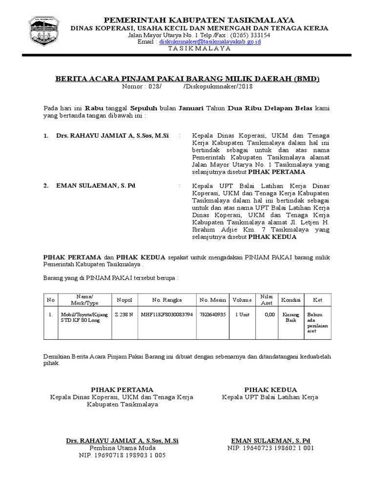 BERITA ACARA PINJAM PAKAI BARANG MILIK DAERAH LAPTOP NOTEE BOOK HP …