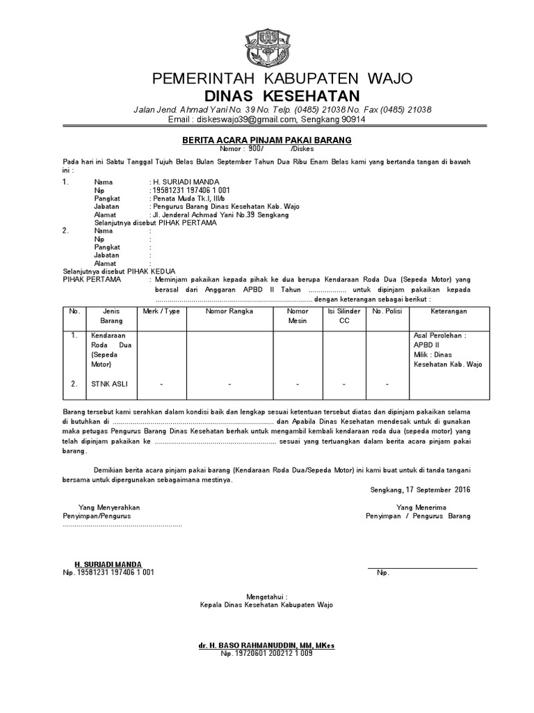 BERITA ACARA PINJAM PAKAI BARANG MILIK DAERAH (Sepeda Motor Yamaha …