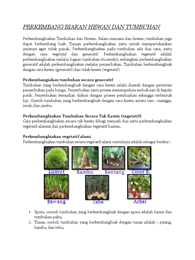 tuliskan masing masing dua contoh tumbuhan yg berkembang Biak …