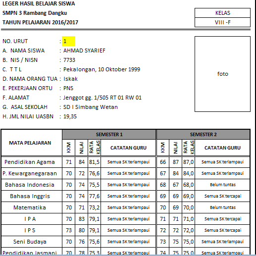 Leger Nilai K13 SD, SMP, SMA Revisi - Info Pendidikan Terbaru
