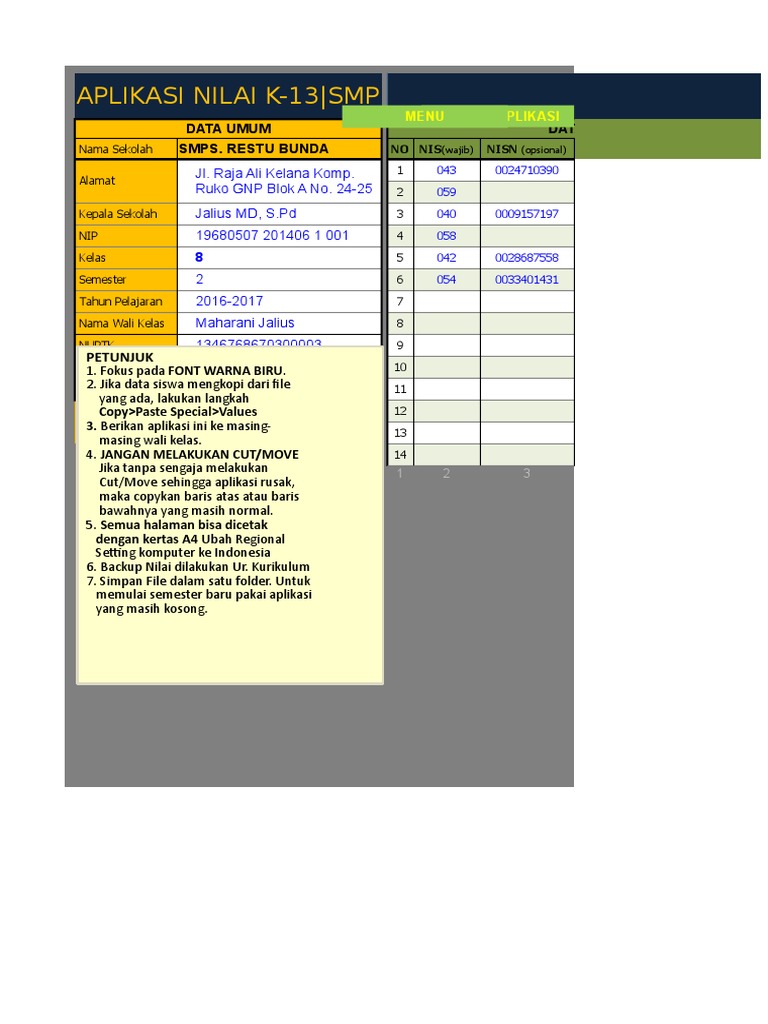 APLIKASI RAPOR SMP KURIKULUM 2013 VERSI EXCEL - INFOGURUKU
