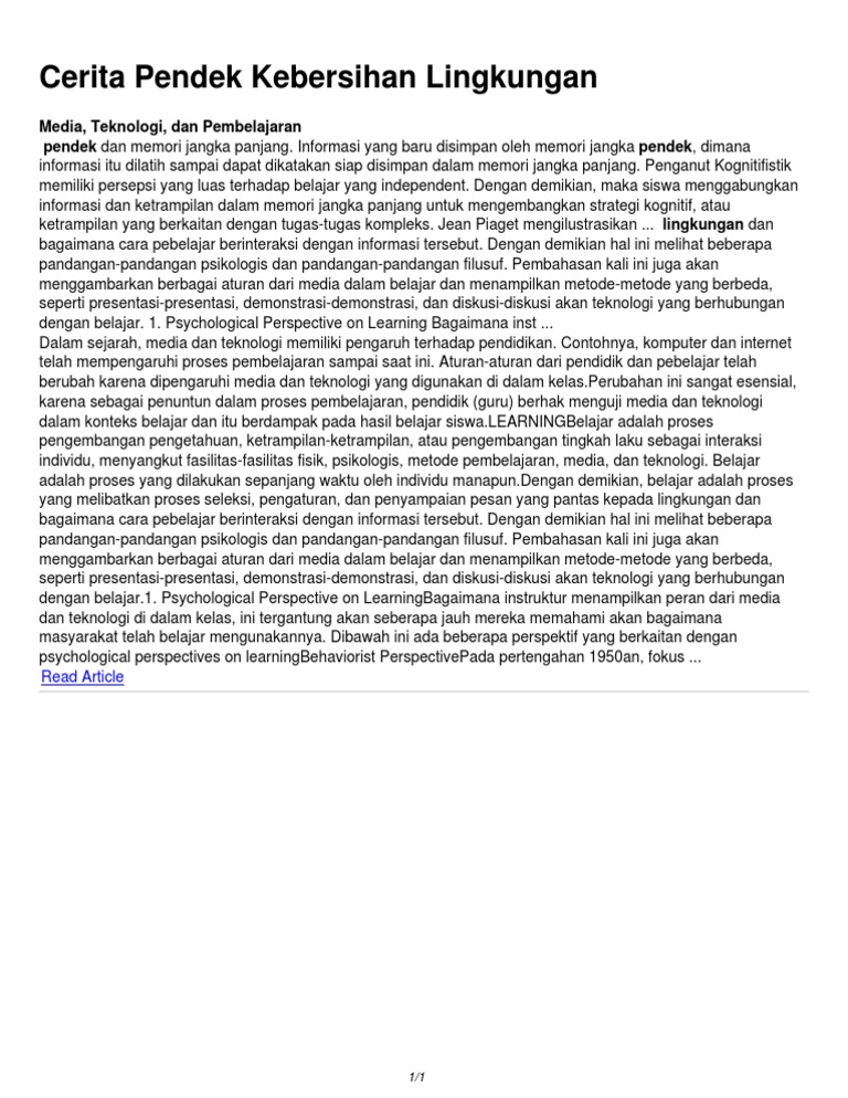 PDF) Pendidikan Lingkungan Siswa SMA dalam Cerpen Koran Kompas …