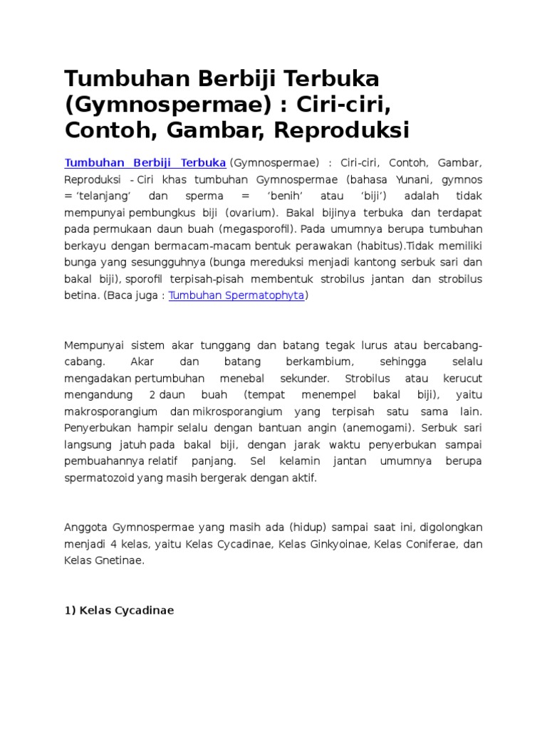 Tumbuhan Berbiji Terbuka Ciri-ciri Klasifikasi dan Contohnya