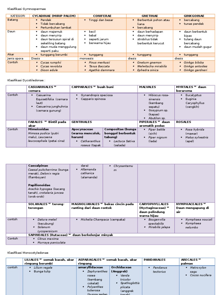 pasangan antara,nama ,kelas,ciri dan contohnya spesies tumbuhan dalam tabel berikut yg benar - Brainly.co.id