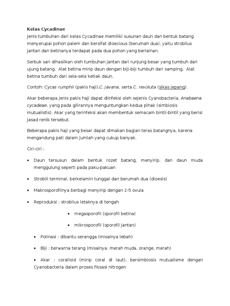 Mengapa tumbuhan tersebut dimasukkan ke dalam kelas Cycadinae? - Brainly.co.id