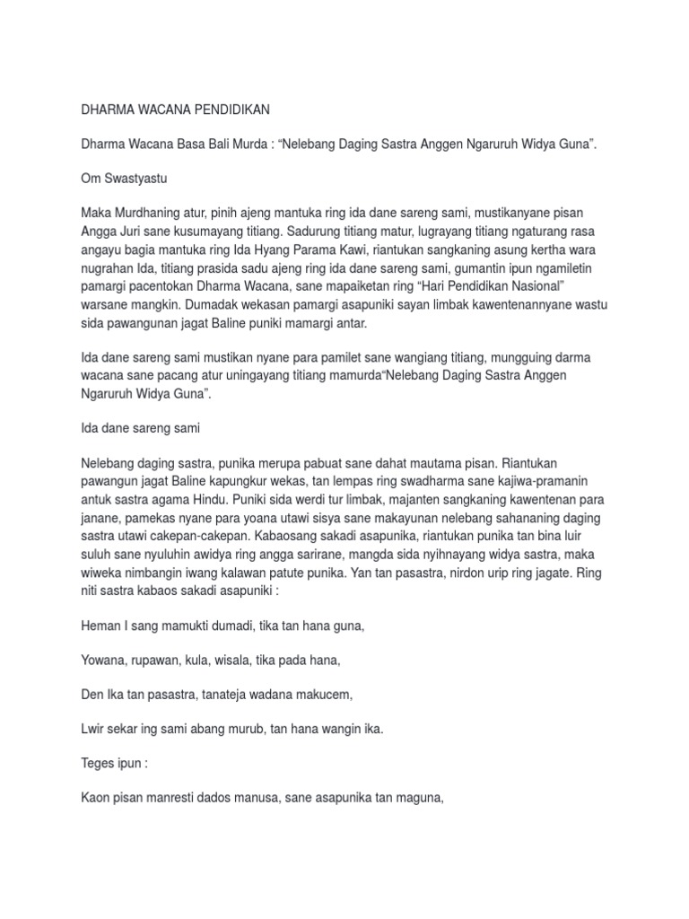 Contoh Teks Dharma Wacana Bahasa Bali Singkat - Berbagai Teks Penting