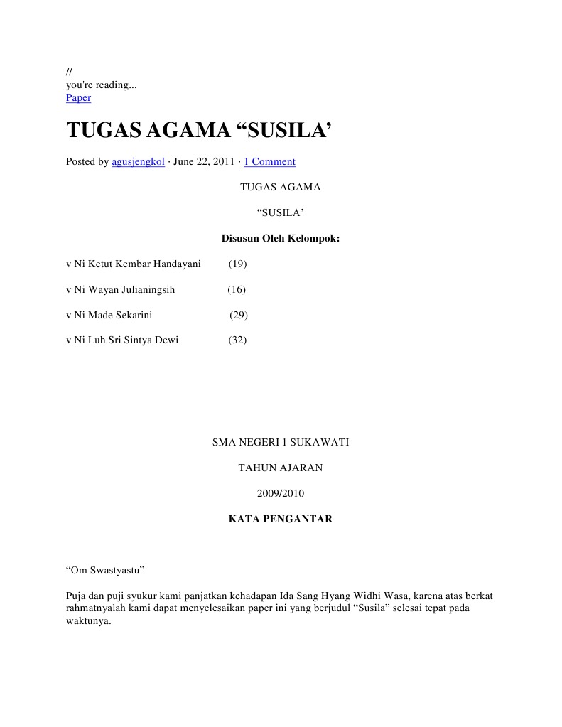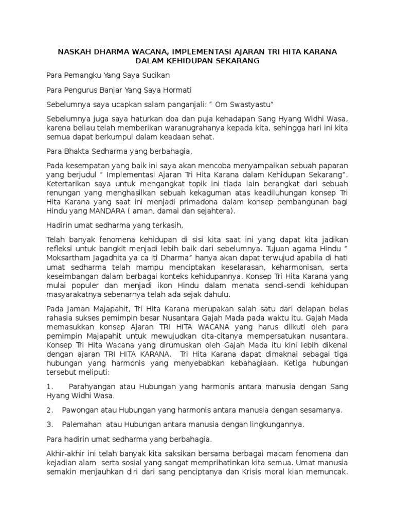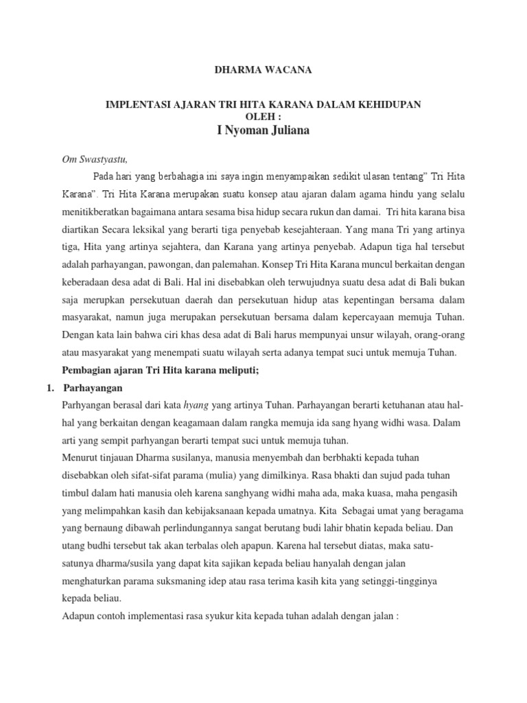 Contoh Dharma Wacana Bahasa Bali Singkat Tentang Agama - Deretan …