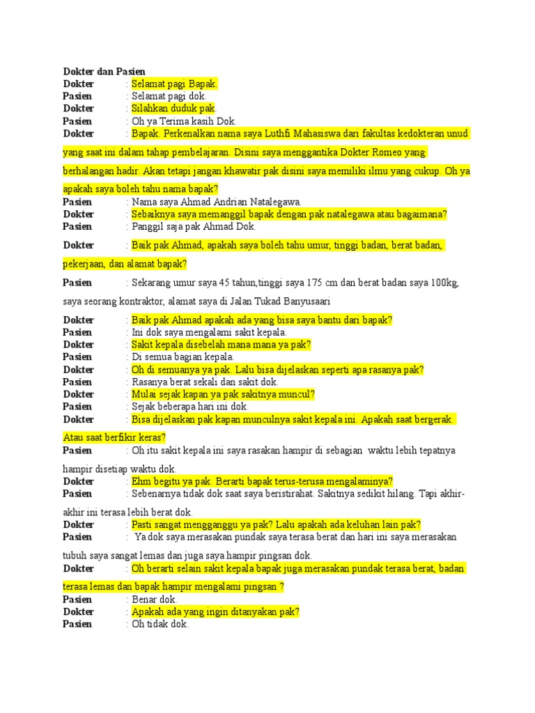 Contoh Dialog Dokter Dan Pasien