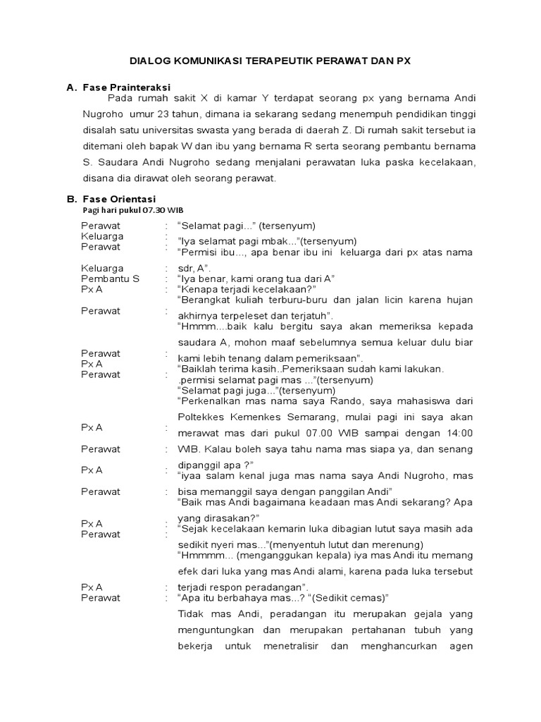 Contoh Dialog Komunikasi Terapeutik Perawat Dan Pasien - Temukan …
