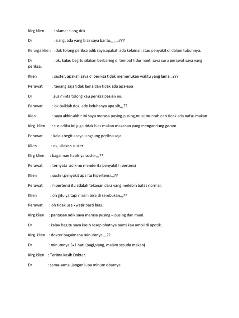 Contoh Dialog Perawat Dan Pasien Hipertensi