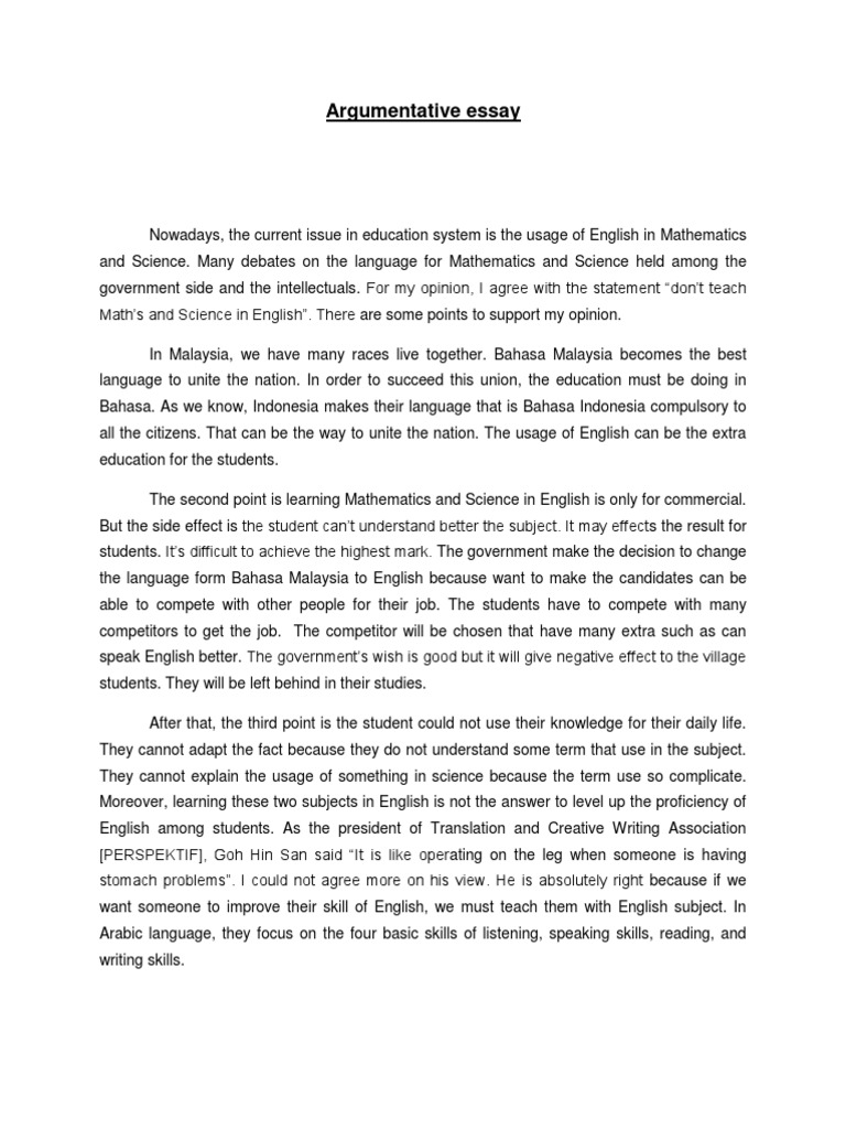 Argumentative Essay | English Language | Science